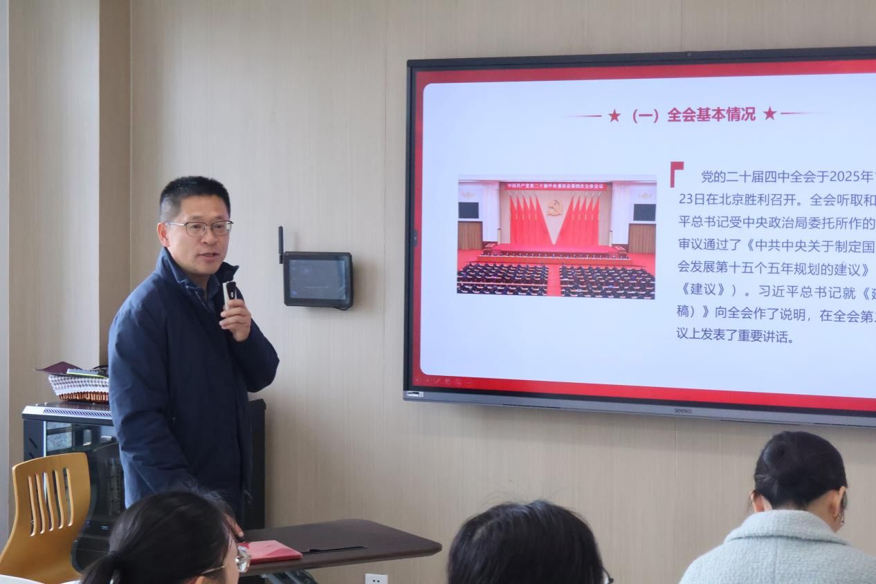 为深刻领会党的创新理论,准确把握党中央和省委的战略部署与工作要求,12月17日下午,学校党委委员、副校长韩永良为学院教师第一党支部讲授专题党课,系统解读党的二十届四中全会和省委十五届八次全会精神。教师第一党支部党员及部分非党员教师参加学习。