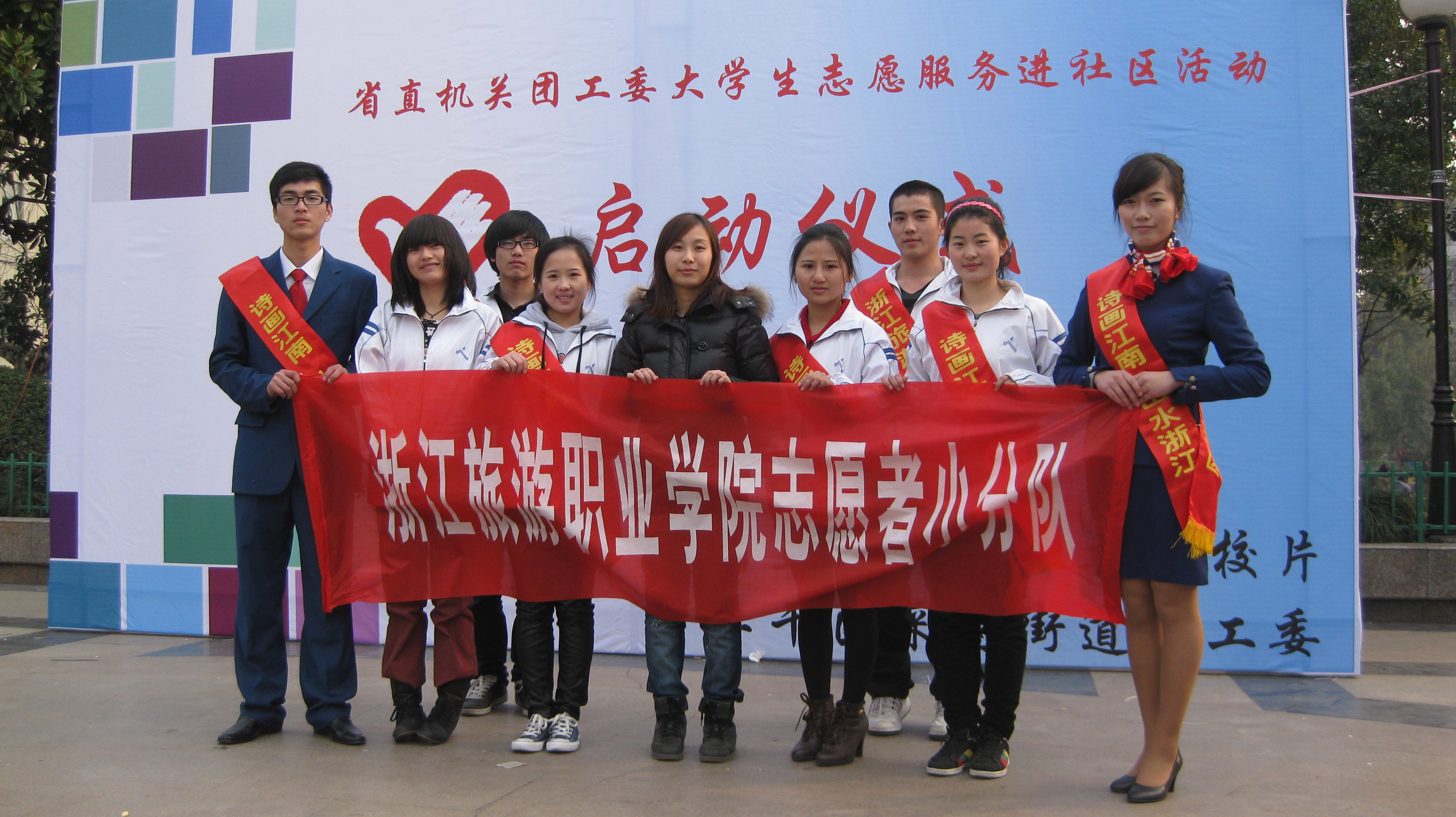 浙江旅游职业学院艺术系受院团委委托有幸参与此次活动。本次活动地点在杭州江干区采荷街道。整个活动采取接力服务的方式,每次由一所学校承担或者牵头开展志愿服务活动。浙江旅游职业学院主要服务项目为“送温暖,关爱老年人健康”。活动在院团委副书记叶蔚兰、系团总支书记阮慧娟的带领下开张。期间艺术系志愿者对老年人就“如何预防老年人疾病”、“如何预防老年人心理问题”、“老年人旅游注意事项”等问题为老人们做了现场咨询。同时免费发放了300份老年人保健食品,100份小点心。活动现场氛围活跃,达到了预期目标。