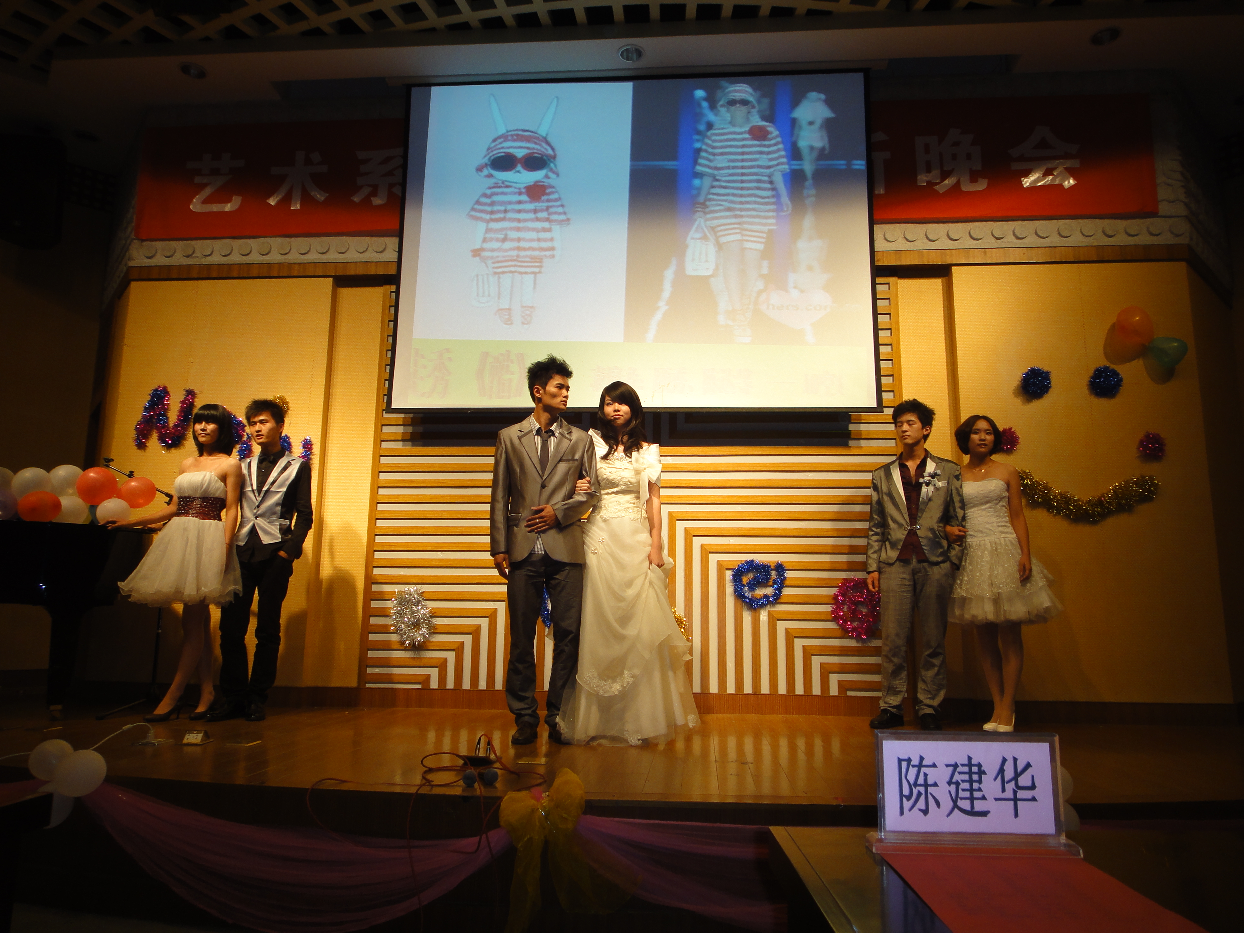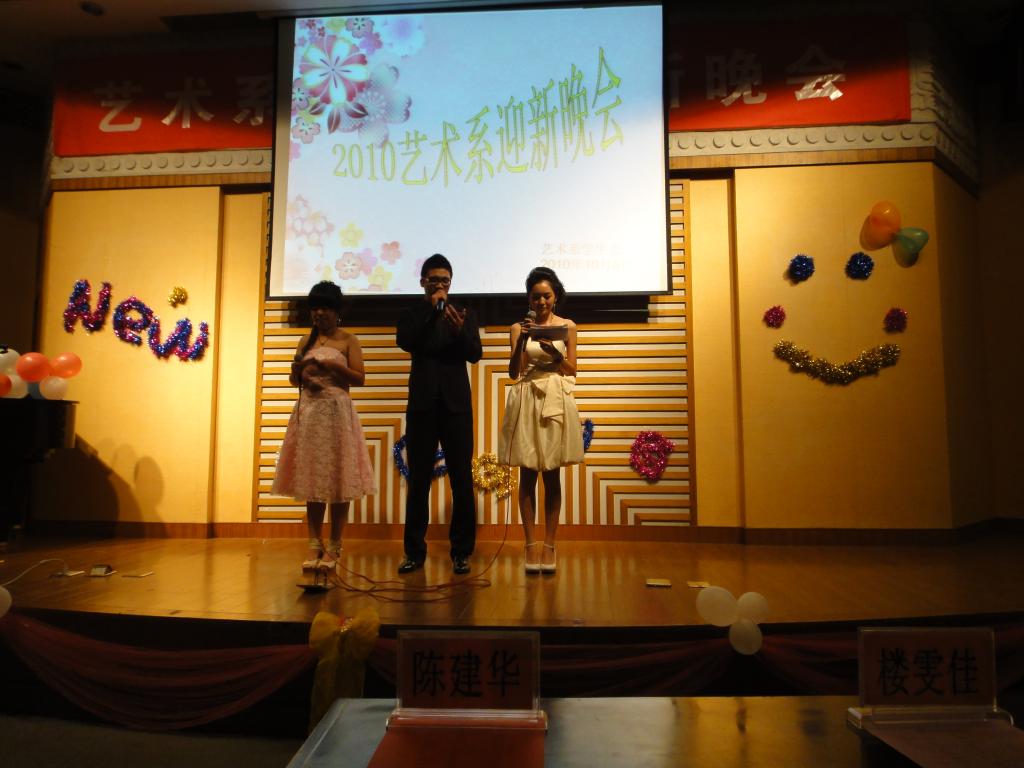 10月8日晚18:00惟实厅,艺术系2010级251名新生济济一堂堂,举办了艺术系迎新晚会。出席此次活动的领导有系副主任励继红老师、艺术系辅导员、新生各班班主任、金通招就办主任赵宝峰老师及金通辅导员。晚会由三位2010级的新生担任主持人,引领251名新生抓住晚会上一个又一个高潮。晚会上Sunny舞蹈社团激情四射的爵士,动感的韵律引起同学们一阵又一阵的喝彩。新生们的乐器串烧尽显新生的才能、活力四射的拉丁舞者引来同学们的无数尖叫、激情洋溢的歌曲串烧散发着新生无尽的热情与活力。舞蹈表演曲目剑舞中的刚与柔的结合,完美地诠释了唯美的涵义。