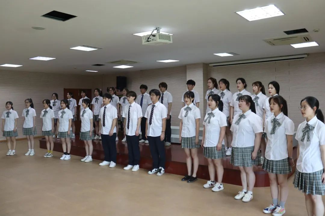 每个班级的合唱都满怀情感,通过歌声回望那峥嵘岁月,同学们在演唱中,歌声愈发嘹亮,心中的信念便愈发坚定,用歌声赞美这美丽中华的光辉历程和伟大成就。