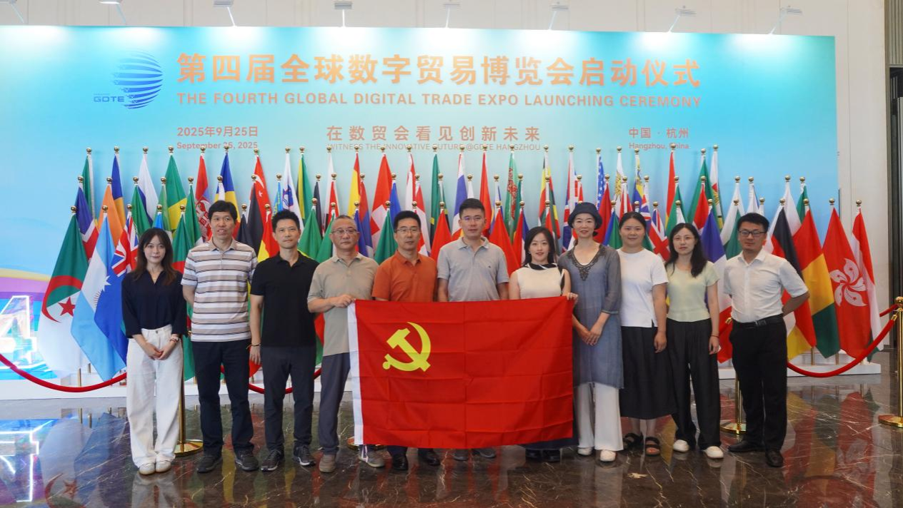 以高质量党建引领高质量发展,将党建工作融入中心工作。教师第二党支部开展党员(扩大)活动,赴在杭州举办的第四届全球数字贸易博览会(以下简称“数贸会”)调研行业、走访企业、看望学生志愿者及参加论坛会议。学院党总支书记史庆滨、教师第二支部党员教师、商贸类专业负责人及骨干教师参加了此次调研。