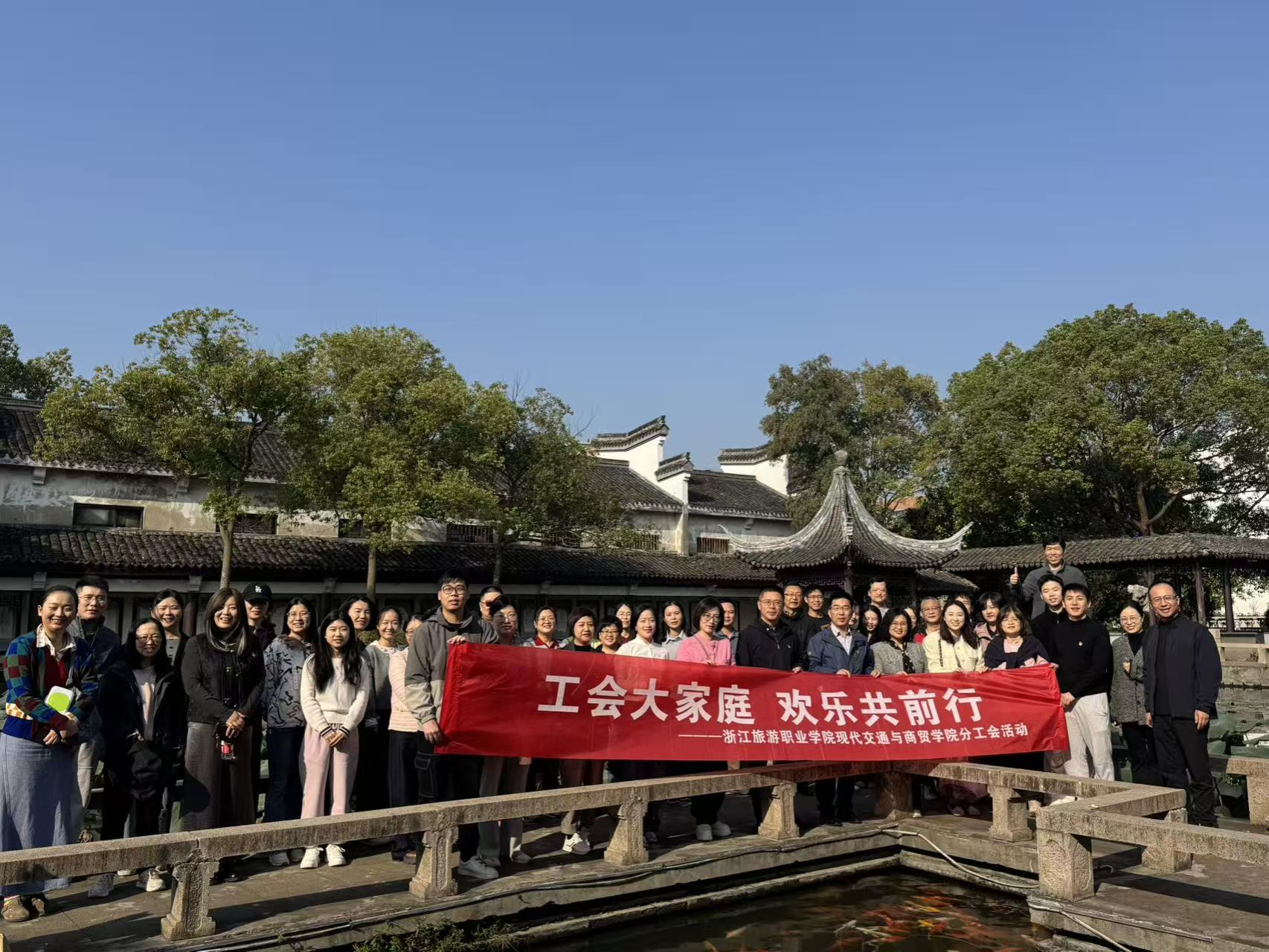 为丰富教职工精神文化生活,增进同事间的沟通与情谊,近日,学院分工会组织全体教职工赴南浔开展“秋韵凝心”主题工会活动,先后走进南浔古镇、南浔文园与湖州影视城,在秋日盛景中感受人文魅力,在携手同行中凝聚团队力量。
